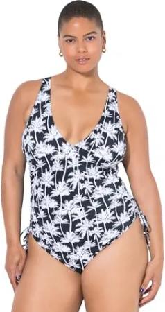 Damen große Größen Übergrößen Plus Size Badeanzug, Softcups, Palmen-Print, Shaping Offwhite 48 841552200-48