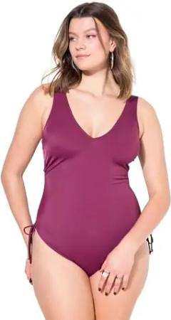 Damen große Größen Übergrößen Plus Size Badeanzug, Softcups, seitliche Raffungen, Shaping weinrot 52 839468834-52