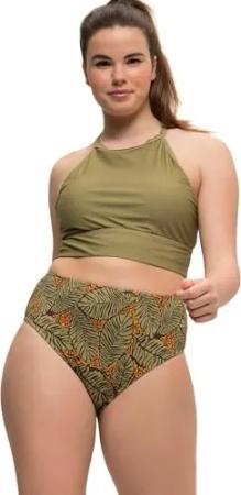 Damen große Größen Übergrößen Plus Size Bikini-Slip, Blätterprint, Highwaist hellkhaki 50 829482634-50