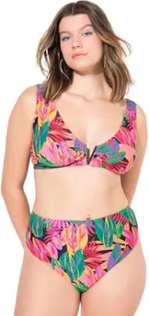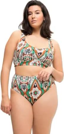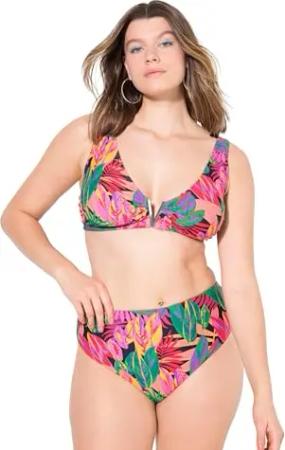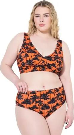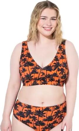 Damen große Größen Übergrößen Plus Size Bikini-Top, Softcups, Palmenprint, Shaping kürbis 44 840852663-44