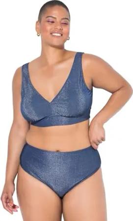 Damen große Größen Übergrößen Plus Size Bikini-Slip, Highwaist, Glitzereffekt, Shaping dunkel blau 54 829911741-54