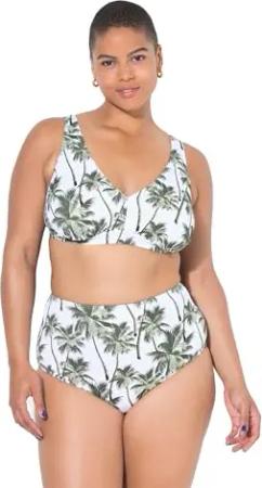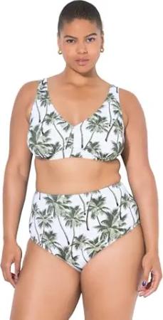 Damen große Größen Übergrößen Plus Size Bikini-Top, Softcups, Palmenprint, Shaping Offwhite 50 841573200-50