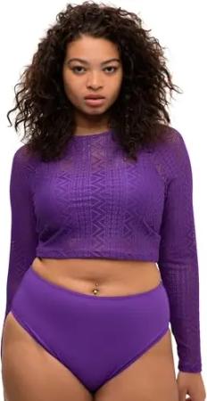 Damen große Größen Übergrößen Plus Size Bikini-Top, Softcups, Spitze, Rundhals, Langarm violett 50 818003838-50