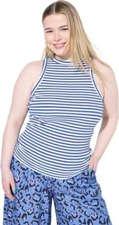 Damen große Größen Übergrößen Plus Size Tanktop, Slim Shape, Rippjersey, Ringel himmelblau 46+ 841258728-46+