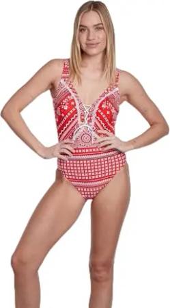 Badeanzug Damen Badeanzug - moderner Einteiler mit verführerischen tiefen Rücken - große Cups mit Schalen und verstellbaren Trägern - ideal für den Sommerurlaub