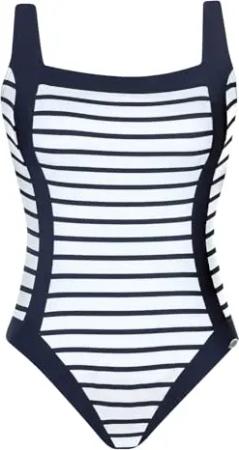 Badeanzug Damen Badeanzug - Einteiler mit Schalen und hohem Rücken - große Cups und verstellbare Träger - zweifarbig mit klassischen Streifen