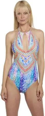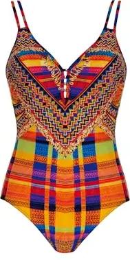 Badeanzug Ethno Multicolor Einteiler mit Softschalen verstellbare Träger tiefer Ausschnitt tiefer Rücken
