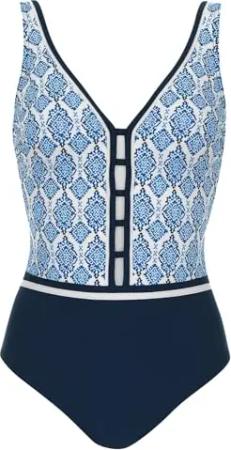 Shapewear Badeanzug mit Softcups blau-Weiss 44 B