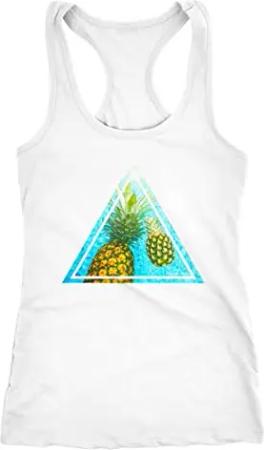 Damen Tank-Top Foto Print Ananas Palmen Sommer Tropical Dreieck Racerback weiß-Ananas XXL