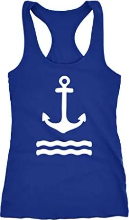 Damen Tank-Top Shirt Anker Wasserwelle Racerback blau M