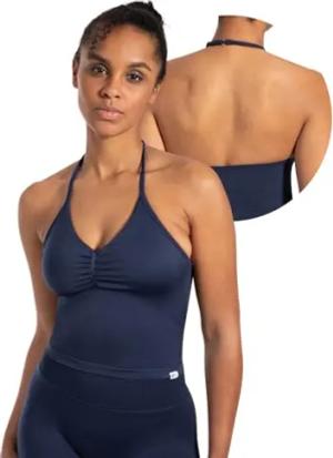 Crop Top Damen Malena, Cropped Neckholder Sporttop mit Ringdetails, Raffung & Rückenfrei, Tanktop nahtlos & figurbetont, ideal für Sport, Freizeit, Yoga & stylische Active Looks