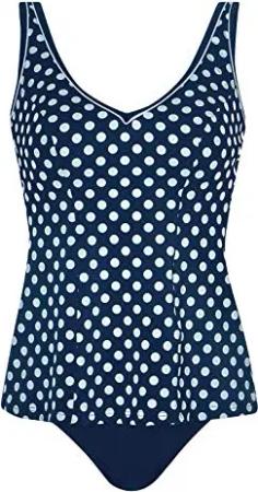 Damen große Größen Übergrößen Plus Size Tankini, Zweiteiler, Umstandsmode, Punkte, seitliche Raffungen, Volantsaum Marine 44 825433130-44