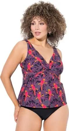 Damen große Größen Übergrößen Plus Size Tankini, Papageien, Softcups, Zierschleife, recycelt schwarz 58 836691100-58