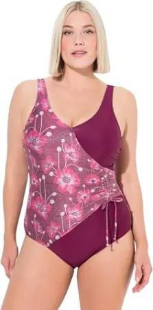 Damen große Größen Übergrößen Plus Size Badeanzug Alina, Wickel, Dark Lilac Flowers