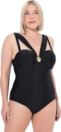Damen große Größen Übergrößen Plus Size Badeanzug, goldene Büste, Softcups, Cut-Out, recycelt schwarz 46 837079100-46