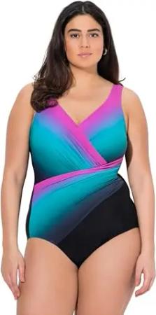 Damen große Größen Übergrößen Plus Size Badeanzug, Drapierung, Farbverlauf, Softcups, recycelt schwarz 54 837691100-54
