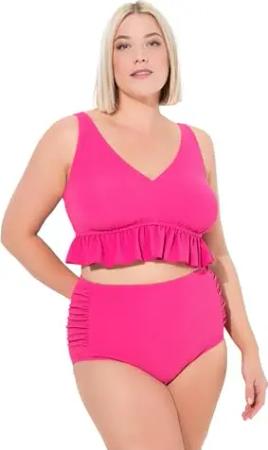 Damen große Größen Übergrößen Plus Size Bikini, Struktur, Rüsche, Softcups, Träger verstellbar