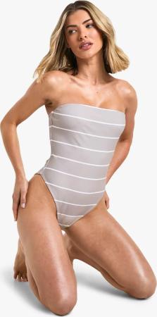 Gestreifter Bandeau-Badeanzug Mit Essentials Streifen - Stone - 32, Stone