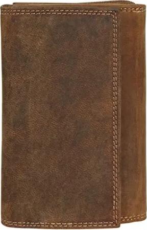 große Geldbörse im Querformat Echt Leder Herren | Portemonnaie aus Rindleder, Kettentasche, Brieftasche, Münzfach, Schnappverschluss | 020344