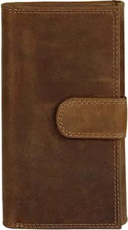 Geldbörse im Hochformat Echt Leder Damen | RFID Geldbeutel, Rindleder Portemonnaie, 11 Kartenfächer, Münzfach, Druckknopf | 020794