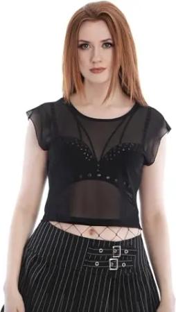 Crop Top Sinead Mesh Netz Bauchfrei, Größe:L