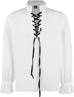 Rüschenhemd mit Schnürung Männer Langarmhemd weiß S