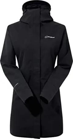 Damen Omeara Shell-Jacke, lang und wasserdicht | Strapazierfähig | Atmungsaktive Regenjacke Jacke, Schwarz/Schwarz, 14