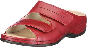 Janna Bequeme Damen Pantolette Leder mit herausnehmbarem Fußbett, Stretcheinsätzen und Klettverschluß, Damenhausschuh Sandale