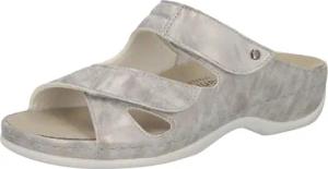Janna Bequeme Damen Pantolette Leder mit herausnehmbarem Fußbett, Stretcheinsätzen und Klettverschluss, Damenhausschuh Sandale