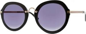 Damen Sonnenbrille Rundglas Designer Schwarz Gold 30412