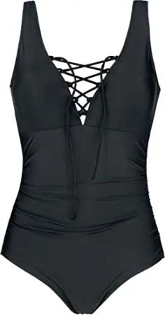Damen schwarzer Badeanzug mit Schnürung 4XL
