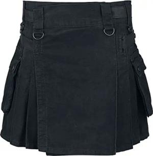 Damen schwarz-grau Kariertes kurzes Kilt XXL