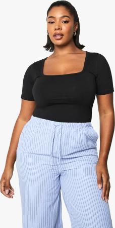 Plus Baumwoll Body Mit Geradem Ausschnitt - Black - 42, Black