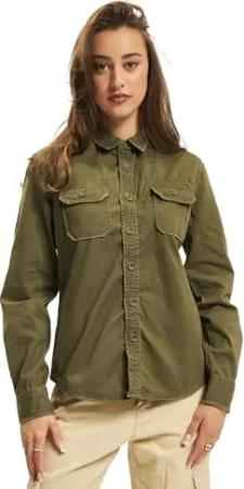 Women Vintage Shirt Long Sleev, Farbe: Olive, Größe: S