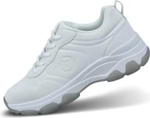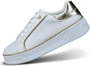 Damen-Weiße Sneakers mit Goldenen Details, Logo-Akzenten, Klobigen Gummisohlen und Stilvollem Design für Legere Kleidung, weiß/Gold, 36 EU