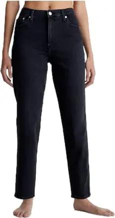 Calvin Klein Damen Jeans Hose Mom Fit, Schwarz (Denim Black), 32W