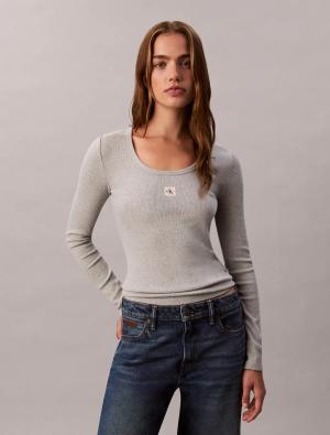 Langarmshirt "LS WOVEN LABEL 2X2 RIB SCOOP NEC" Mit Rundhalsausschnitt, regular fit