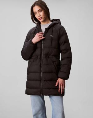 Steppmantel abnehmbare Kapuze, kastige, lange Passform, wattiert