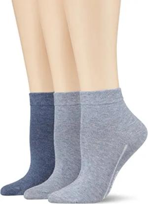 Damen CA-Soft Quarter 3-er Füßlinge, Blau (Denim Mel. 33), 35/38 (3er Pack)
