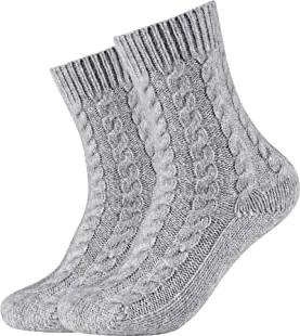 Damen Socken Cosy Kuschelsocken Flauschig Warm Damen Zopfmuster Lang Flauschsocken Norweger Für Winter Set Frauen 2er Pack 35/38 light grey melange