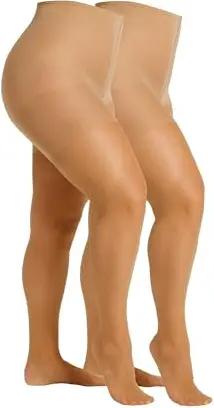 Damen Strumpfhose 20 DEN Curvy große Größen 2er Pack reißfest seidenmatt extra breiter Komfortbund druckfrei 3D ringelfrei verstärkter Fuß 2er Pack 52/54 make up