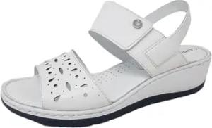 Damen Sandalen flach aus Leder mit Klettverschluss, Weiß (Offwhite Comb), 37 EU