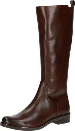 Damen Stiefel Leder Langschaft mit Zierriemen und Blockabsatz 9-25600-43, Größe:37.5 EU, Farbe:Braun