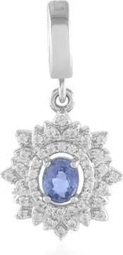 Blauer Ceylon Saphir Anhänger Silber mit unbehandeltem ovalem Brillantschliff Saphir 24x12mm, filigranes Silberdesign mit Zirkonbesatz und Varioclip, eleganter Blütenlook