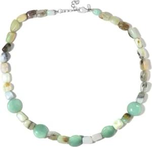 Edelstein Halskette 925 Sterling Silber mit peruanischem Opal und brasilianischem Amazonit, organisch elegant, 45-49 cm, mehrfarbige natürliche Edelsteine
