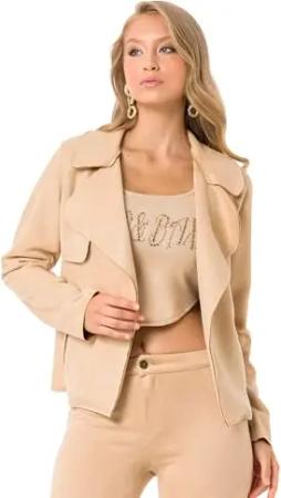 Damen Jacke WJ202 Stein – Elegante Übergangsjacke im Casual Stil mit Reverskragen & weichem Stoff – Vielseitig kombinierbar für Alltag & Freizeit – WJ202 Stein S