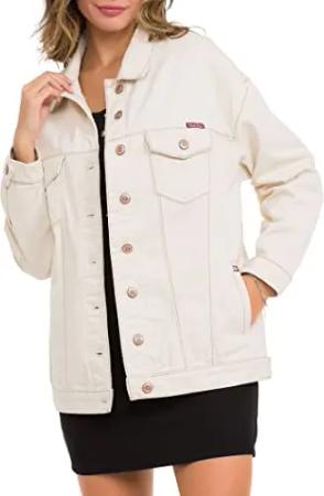 Damen Jacke WJ211 Beige – Klassische Jeansjacke im Modernen Casual Streetwear Look mit Knopfleiste & Brusttaschen – Vielseitige Übergangsjacke für Alltag & Freizeit - WJ211 Beige M