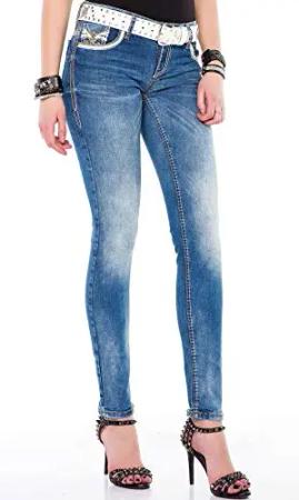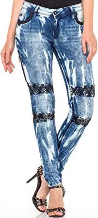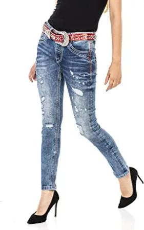 CIPO&BAXX Damen Jeans mit Frayed Legs und Zipper, Blau, 27W / 32L
