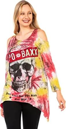 Damen Langarmshirt Schulterfrei Totenkopf Batik-Design Sweater Shirt WL294 Rot L