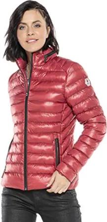 Damen Jacke WJ221 Burgund – Steppjacke im Modernen Casual Streetwear Stil mit Knopfverschluss & Taschen – Warme Übergangsjacke für Alltag & Freizeit – WJ221 Burgund L